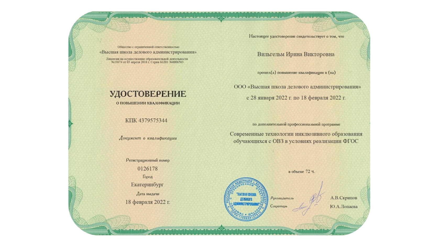 "Современные технологии инклюзивного образования обучающихся с ОВЗ в условиях реализации ФГОС ДО", г. Екатеринбург, 2022 год